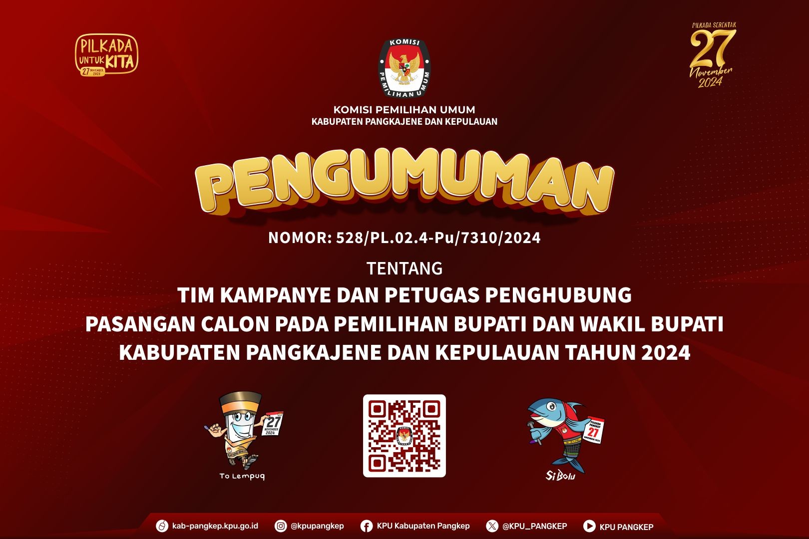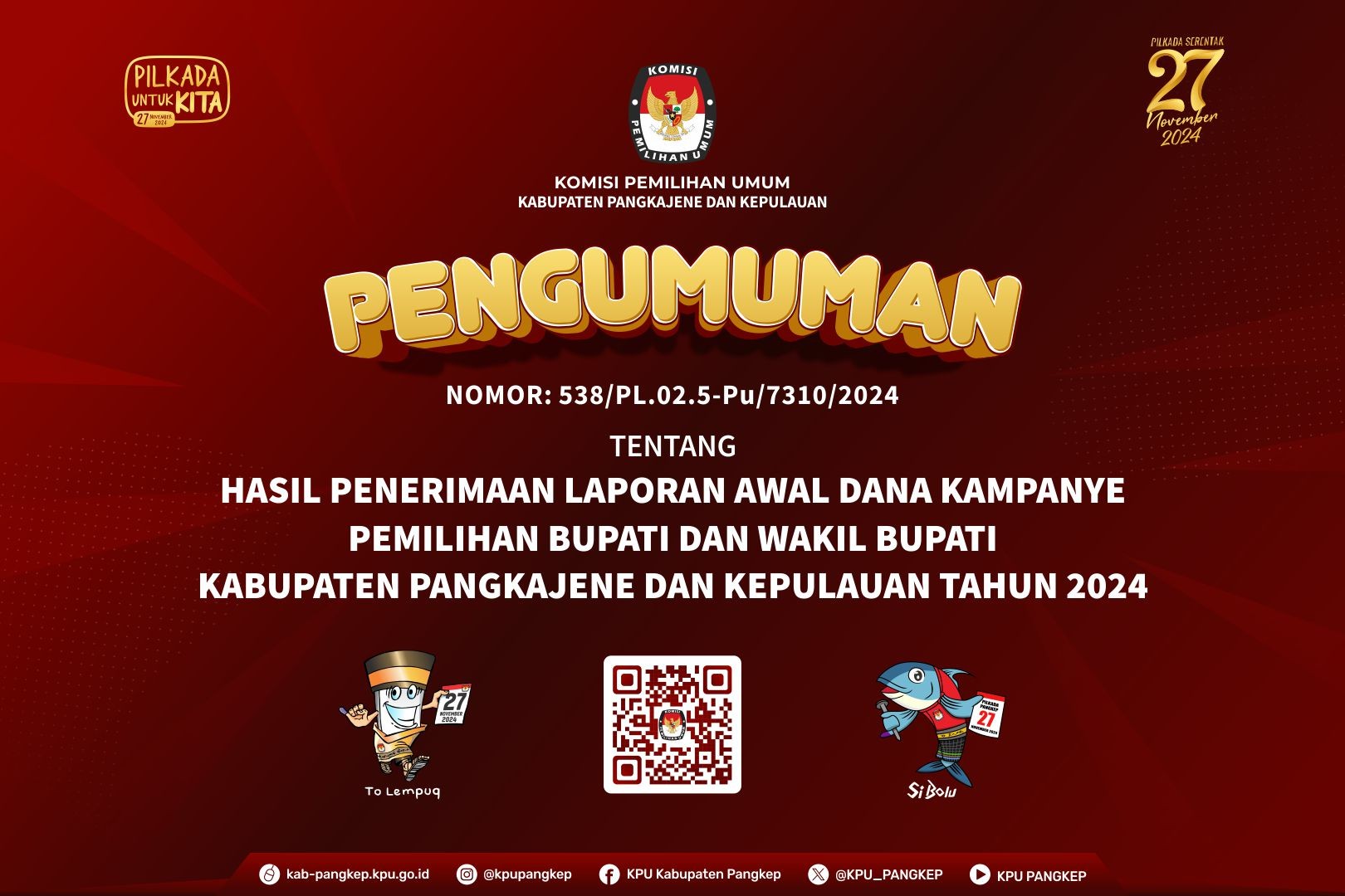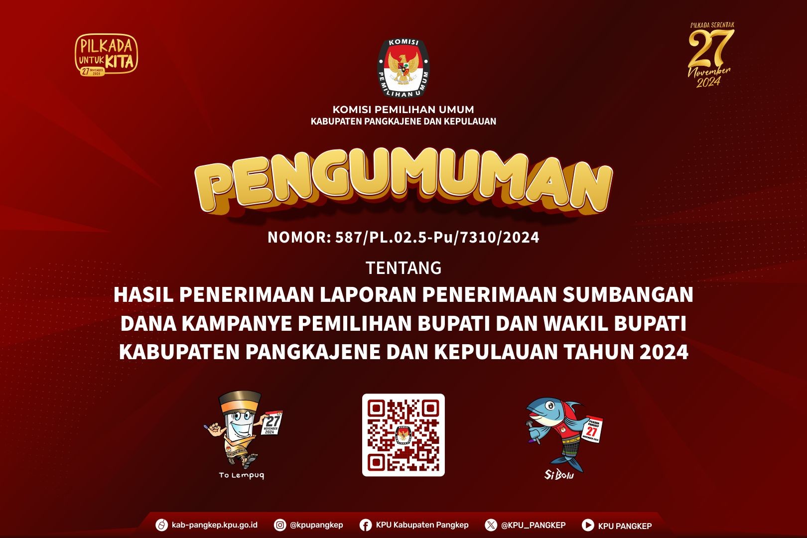 PENGUMUMAN HASIL PENERIMAAN LPSDK PEMILIHAN BUPATI DAN WAKIL BUPATI KABUPATEN PANGKAJENE DAN KEPULAUAN TAHUN 2024