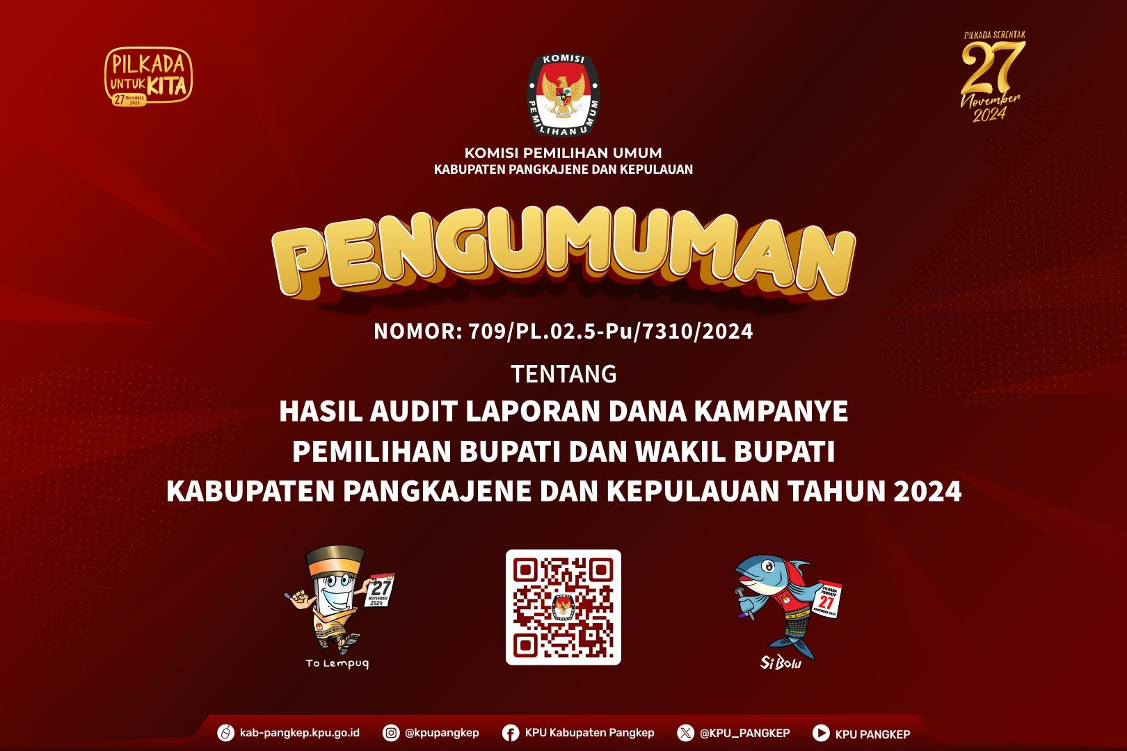 PENGUMUMAN HASIL AUDIT DANA KAMPANYE PEMILIHAN BUPATI DAN WAKIL BUPATI KABUPATEN PANGKAJENE DAN KEPULAUAN TAHUN 2024
