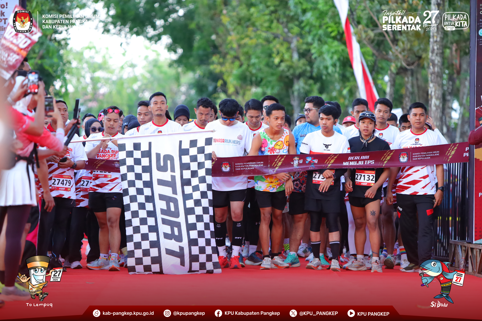 Kurang lebih 1000 pelari ramaikan Pilkada RUN 2024 yang diselenggarakan KPU Kabupaten Pangkajene dan Kepulauan (Pangkep), di Alun-alun Lapangan Citramas, Kecamatan Pangkajene, Kabupaten Pangkep, Minggu (18/10/2024) kemarin. Hajatan akbar berlari yang sengaja digelar ini sebagai bentuk sosialisasi untuk meningkatkan partisipasi pemilih. “Kita melihat saat ini animo masyarakat dalam olah raga berlari sangat tinggi, sehingga itu menjadi langkah pihak KPU untuk meningkatkan partisiasi memilih di pilkada mendatang,” jelas Komisioner KPU Pangkep Divisi Parmas Sosdiklih, Hasanuddin G. Kuna. Hasanuddin menambahkan agenda Pilkada Run yang diselenggarakan, merupakan agenda KPU Provinsi Sulsel yang mengusung tema berlari menuju TPS, kegiatan ini dilaksanakan serentak di 24 KPU kabupaten/kota termasuk Pangkep. “Agenda serentak KPU ini sebagai wadah untuk melakukan sosialisasi guna meningkatkan partisipasi pemilih di Sulsel, dan kami hadir mendukung penyelenggaraan, dengan target dua puluh ribu pelari, berlari bersamaan,” tambahnya. Terpisah Ketua KPU Pangkep Ichlas juga mengapresiasi animo pelari yang hadir menyemarakkan acara pilkada run. “Ini hal luar biasa, diluar dugaan dari jumlah peserta yang terdaftar, banyak para pelari yang ikut terlibat, setidaknya pelari yang hadir capai seribuan,” ujar Ichlas. Tidak hanya berlari, kegiatan ini juga banjir hadiah undian, mulai dari mesin cuci hingga sepeda listrik. Selain itu, kegiatan ini juga berhasil mendapatkan rekor Muri lomba lari 5K serentak tingkat provinsi di lokasi terbanyak.