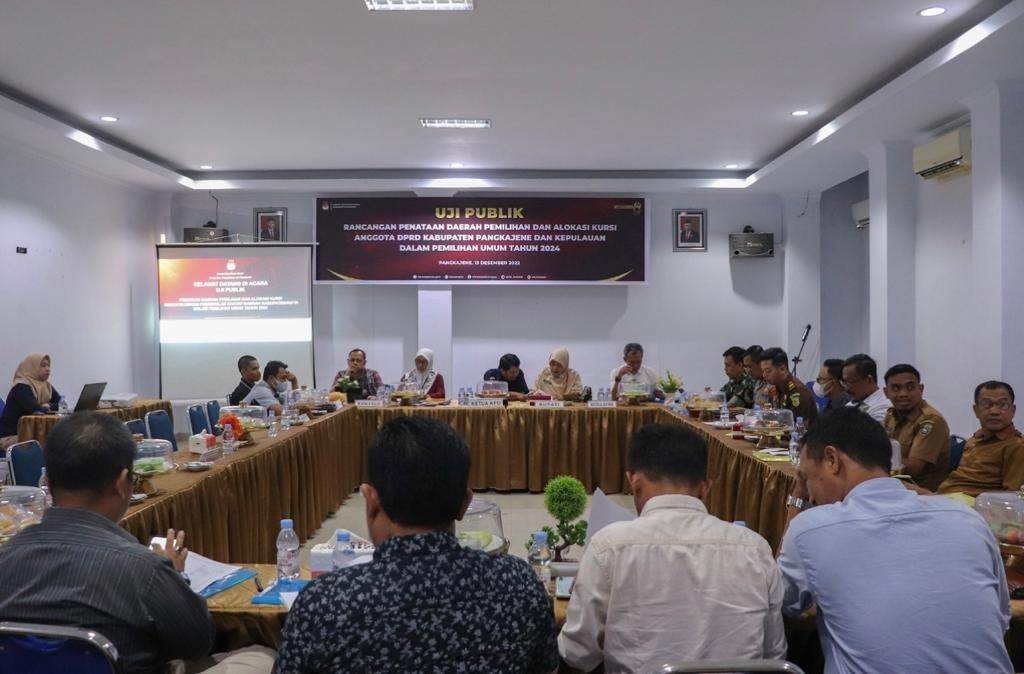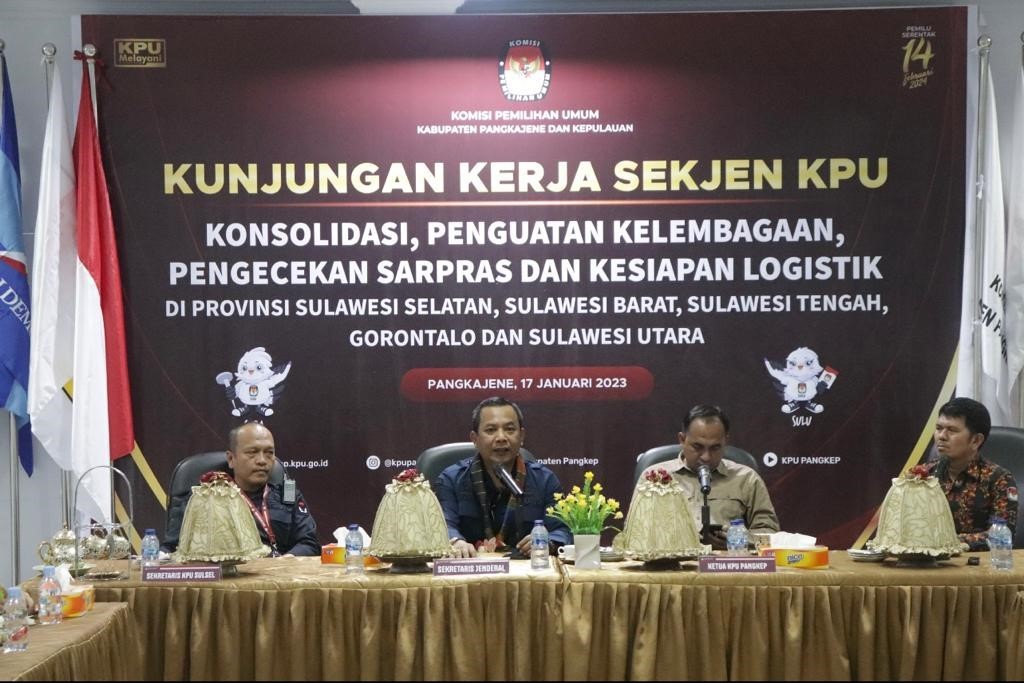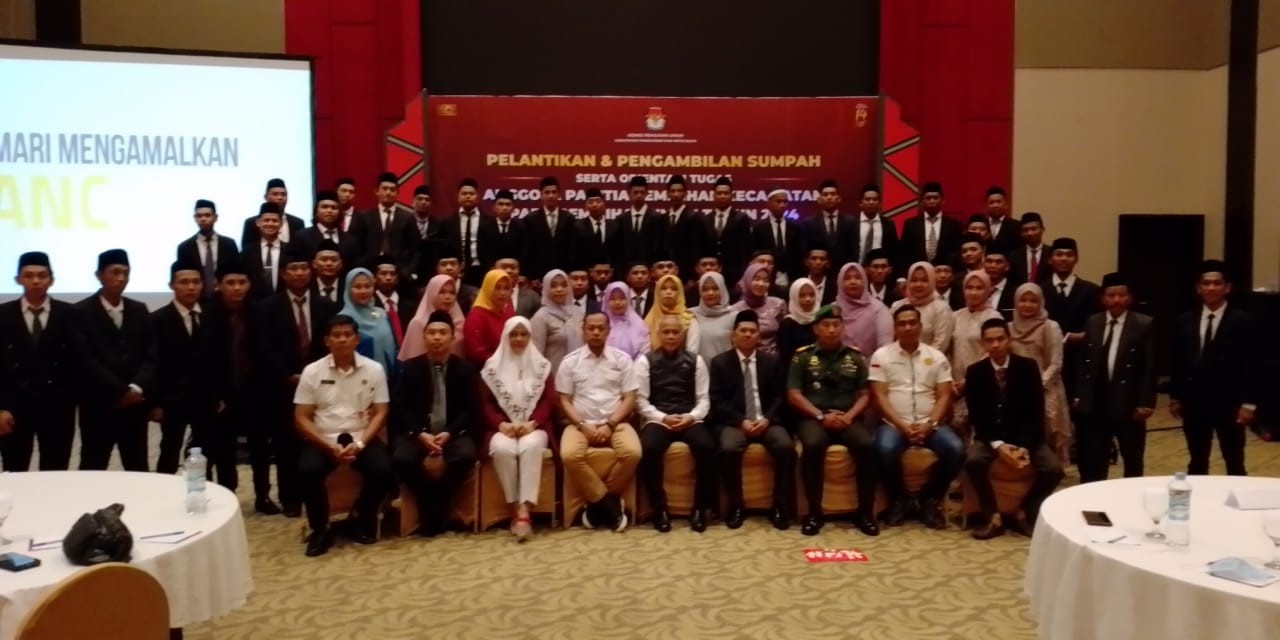 Makassar 04 Januari 2023, KPU Pangkep melantik 65 orang Panitia Pemilihan Kecamatan (PPK) terpilih dari 13 Kecamatan se-Kabupaten Pangkep. Pelantikan dihadiri oleh Wakil Bupati Pangkep, Syahban Sammana, Unsur Forkopimda dan Ketua Bawaslu Pangkep. Dalam pelantikan yang dilaksanakan di Hotel Dalton Makassar pada Rabu (4/1) tersebut, Anggota KPU Divisi Partisipasi Masyarakat dan SDM, Saiful Mujib membacakan Naskah Pelantikan yang diikuti oleh 65 orang Anggota PPK terpilih yang telah melalui serangkaian tahapan seleksi. Dalam sambutannya, Wakil Bupati Pangkep menyampaikan apresiasi dan ucapan selamat bagi Anggota PPK terpilih, “Menjadi PPK bukan hal yang mudah, dan yang terpilih adalah putra putri terbaik Kabupaten Pangkep yang telah melalui proses seleksi ketat, yang nantinya akan menentukan sukses tidaknya proses pemilu tahun 2024 mendatang”, ungkap Syahban. Pelantikan kemudian dirangkaikan dengan kegiatan pembekalan bagi Anggota PPK terpilih sebagai persiapan sebelum melaksanakan tugas sebagai bagian dari Penyelenggara Pemilu. Materi yang diberikan antara lain sosialisasi Peraturan KPU Nomor 7 tahun 2017 tentang Pemilu yang dibawakan oleh Anggota KPU Divisi Data, Rohani. Dan untuk mempersiapkan Anggota PPK yang jujur dan berintegritas, Anggota KPU Divisi Teknis dan Penyelenggara, Aminah memberikan pembekalan mengenai “Integritas Penyelenggara”. Acara ditutup dengan pembekalan terkait Tata Kerja dan Peningkatan Kapasitas Penyelenggara Pemilu oleh Anggota KPU Divisi Partisipasi Masyarakat dan SDM, Saiful Mujib.